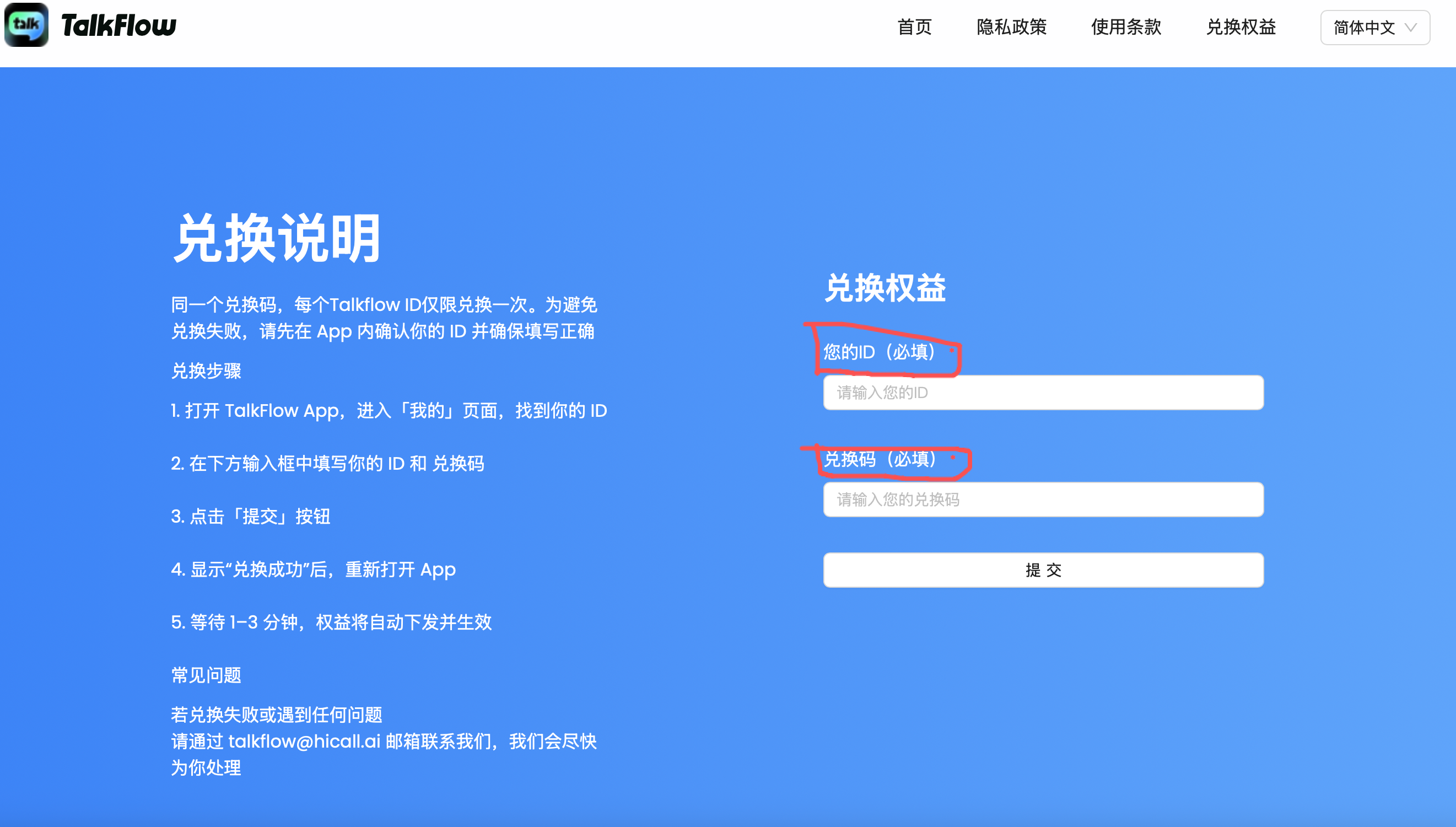 https://talkflow.hicall.ai/callout-lite/zh/talkflow找到右上方“兑换权益”,进入页面