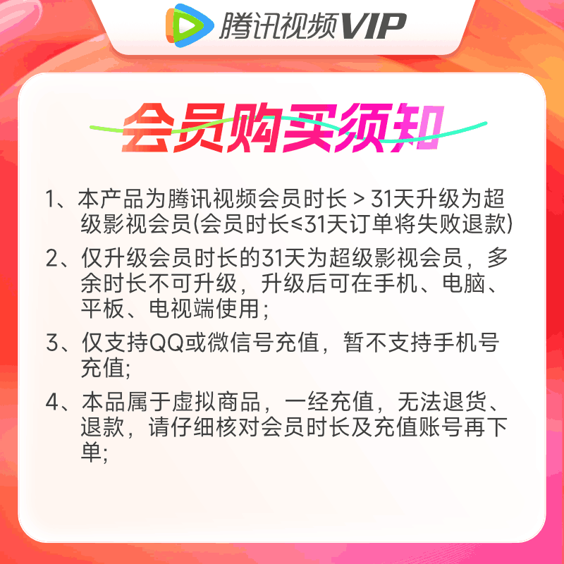 自身需要有腾讯视频大于31天的,然后拍下这个,直接升级为超级影视会员!