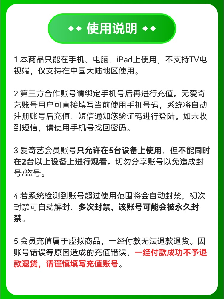 首页 > 商品目录 > 【多多专用】爱奇艺黄金会员『7天』