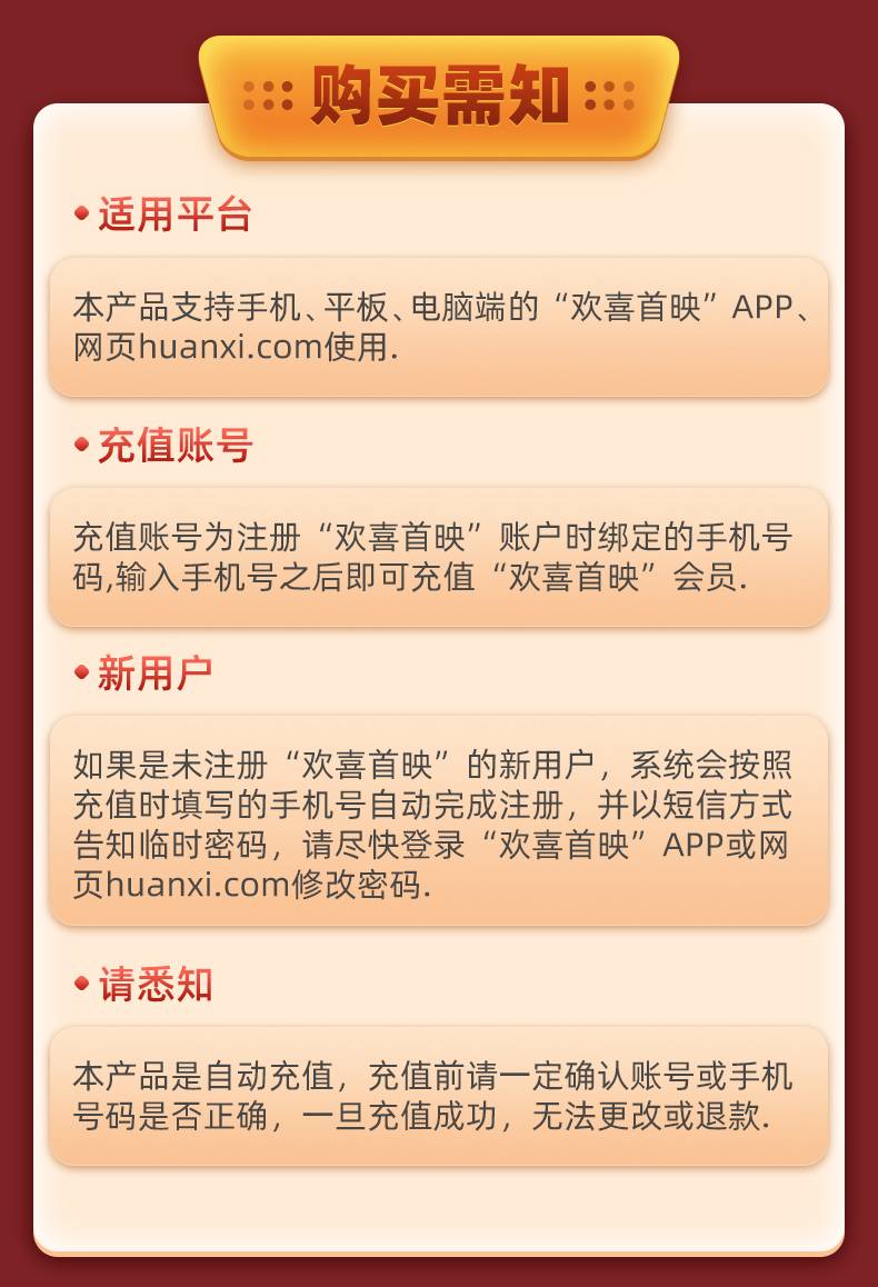 首页 > 商品目录 > 【账号直充】欢喜首映VIP会员『3个月』