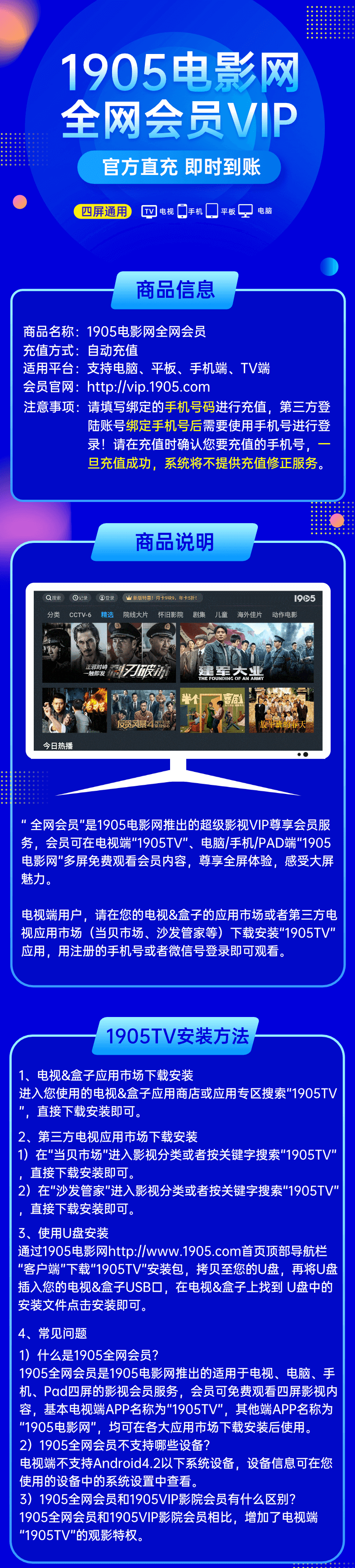 首页 > 商品目录 > 【账号直充】1905电影网电视会员『3个月』