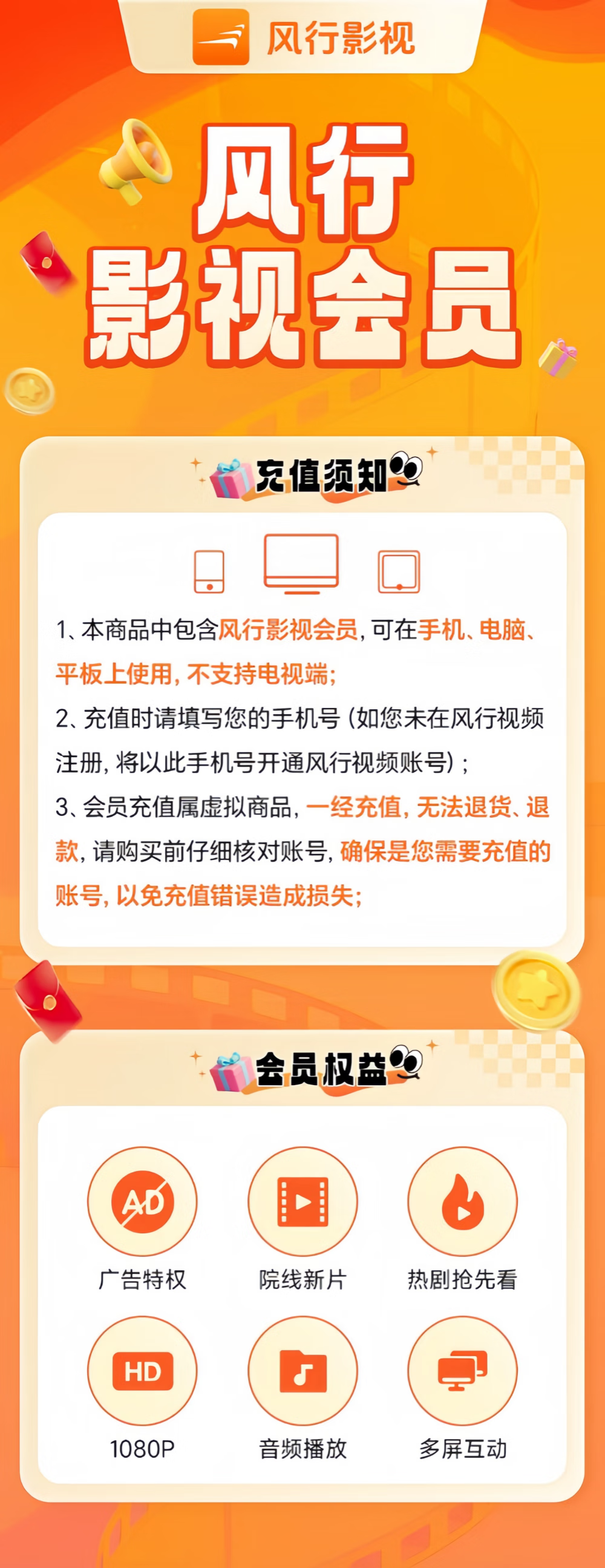 【账号直充】风行影视会员『12个月丨非电视』