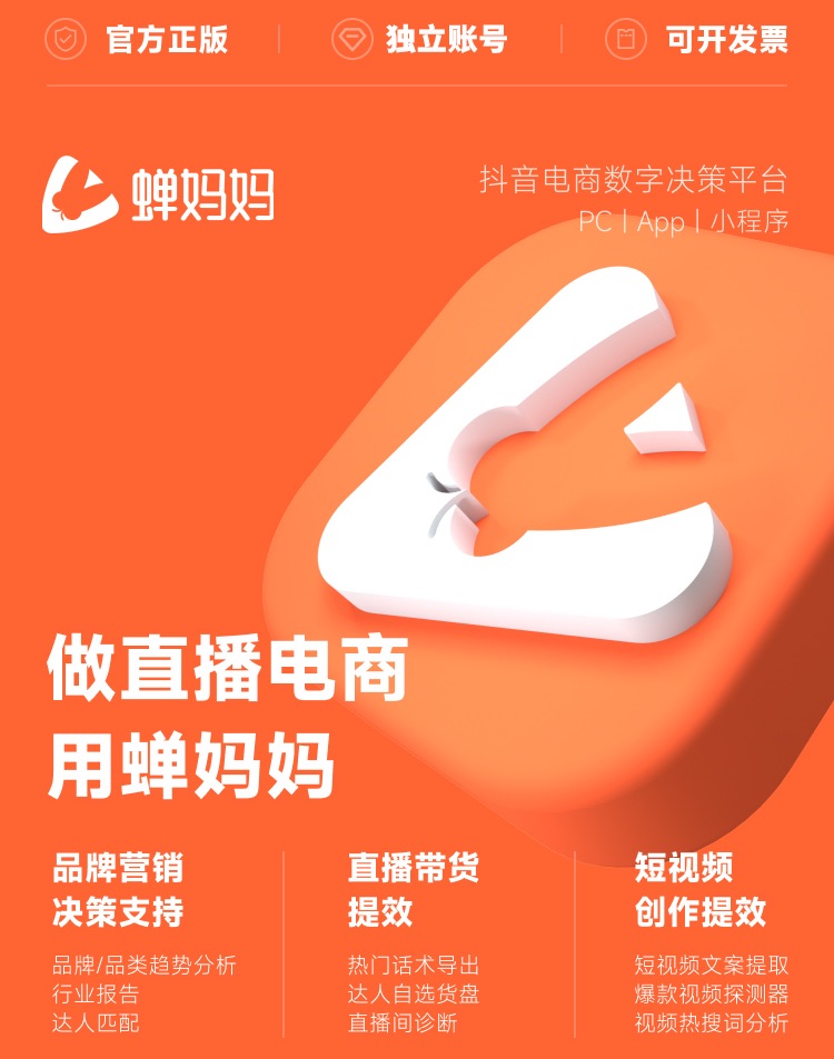 首页 > 商品目录 > 【账号直充】蝉妈妈运营版会员『3个月』