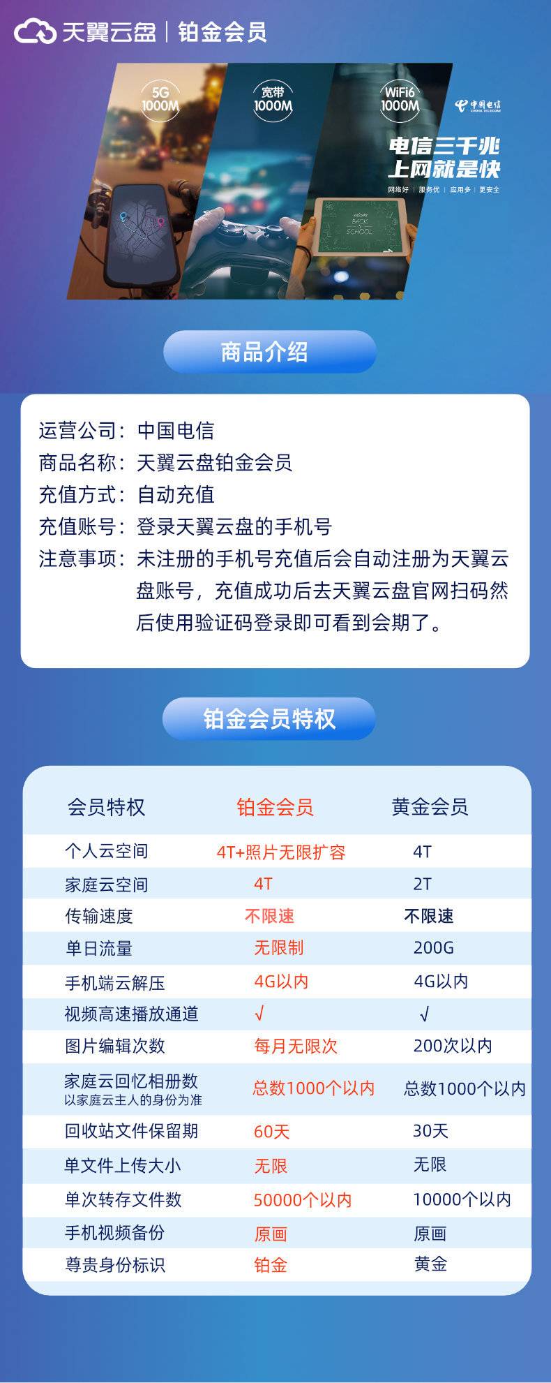 首页 > 商品目录 > 【电商专用】天翼云盘铂金会员『3个月』限价48元