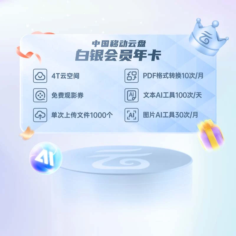 【账号直充】中国移动云盘白银会员『12个月』