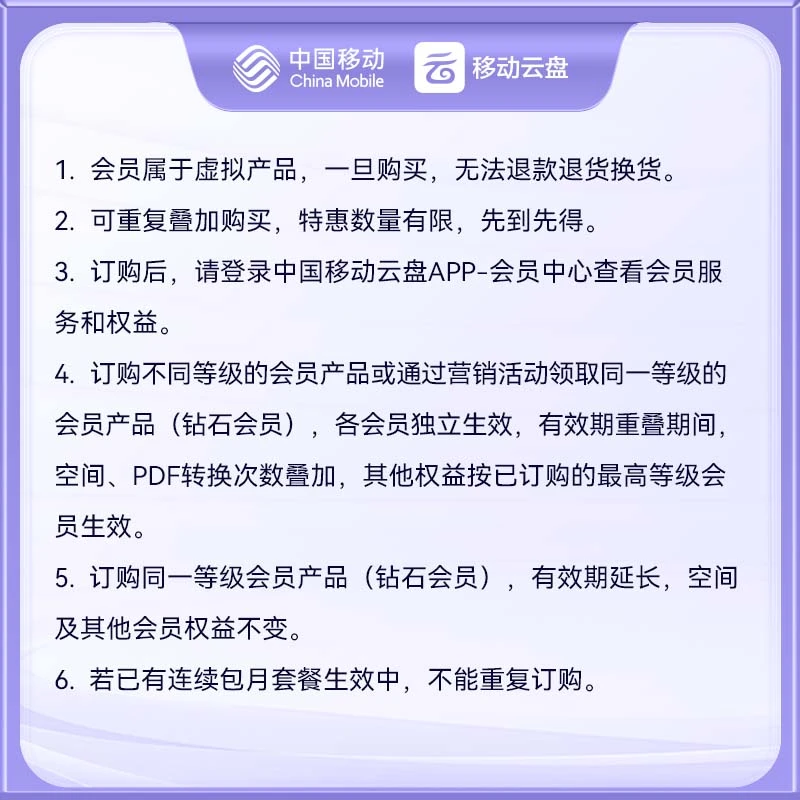 首页 > 商品目录 > 【账号直充】中国移动云盘钻石会员『1个月』
