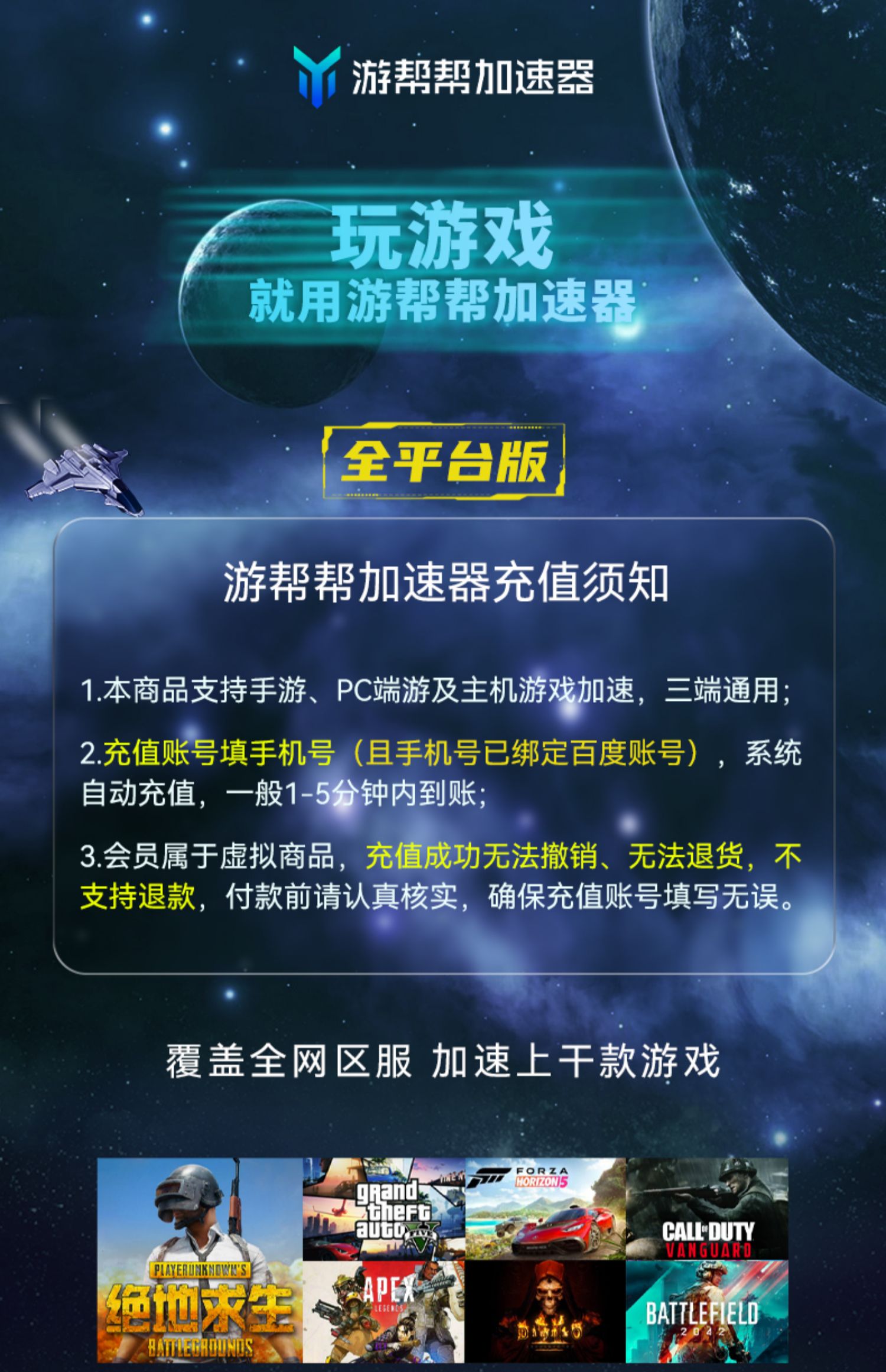 【账号直充】游帮帮加速器仅手游『6个月丨移动端』