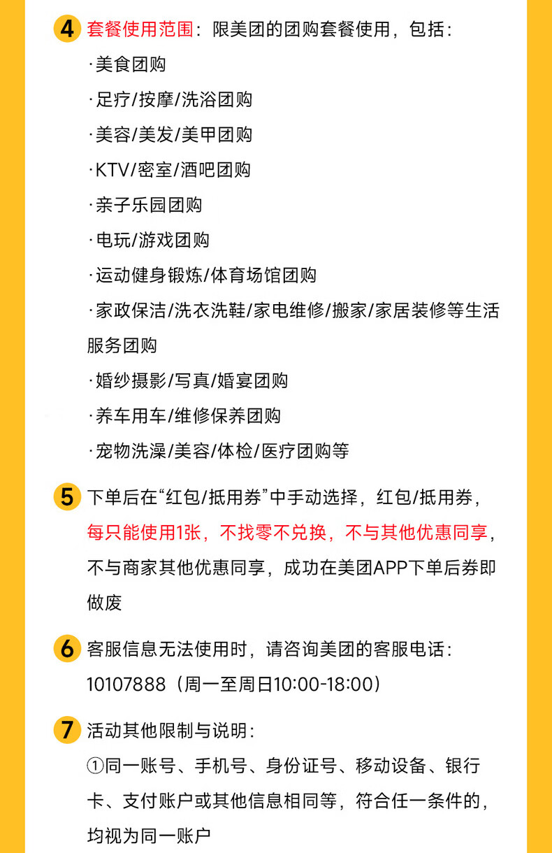 【官方直充】美团团购到店通用代金券丨5元