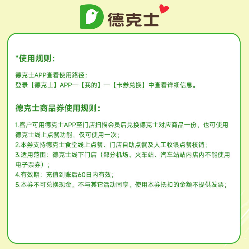 【账号直充】德克士单品兑换券『椒香脆皮鸡腿堡+魔法鸡块+咔滋薯霸(中)+百事可乐(中)』