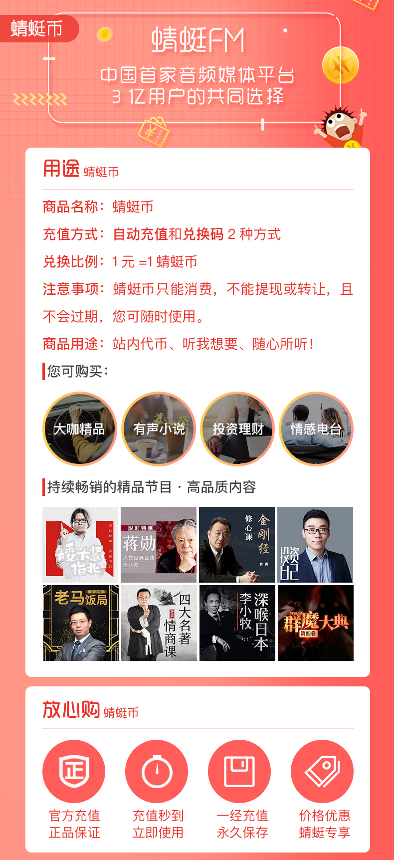 【苹果端】蜻蜓FM蜻蜓币1元丨支持倍数