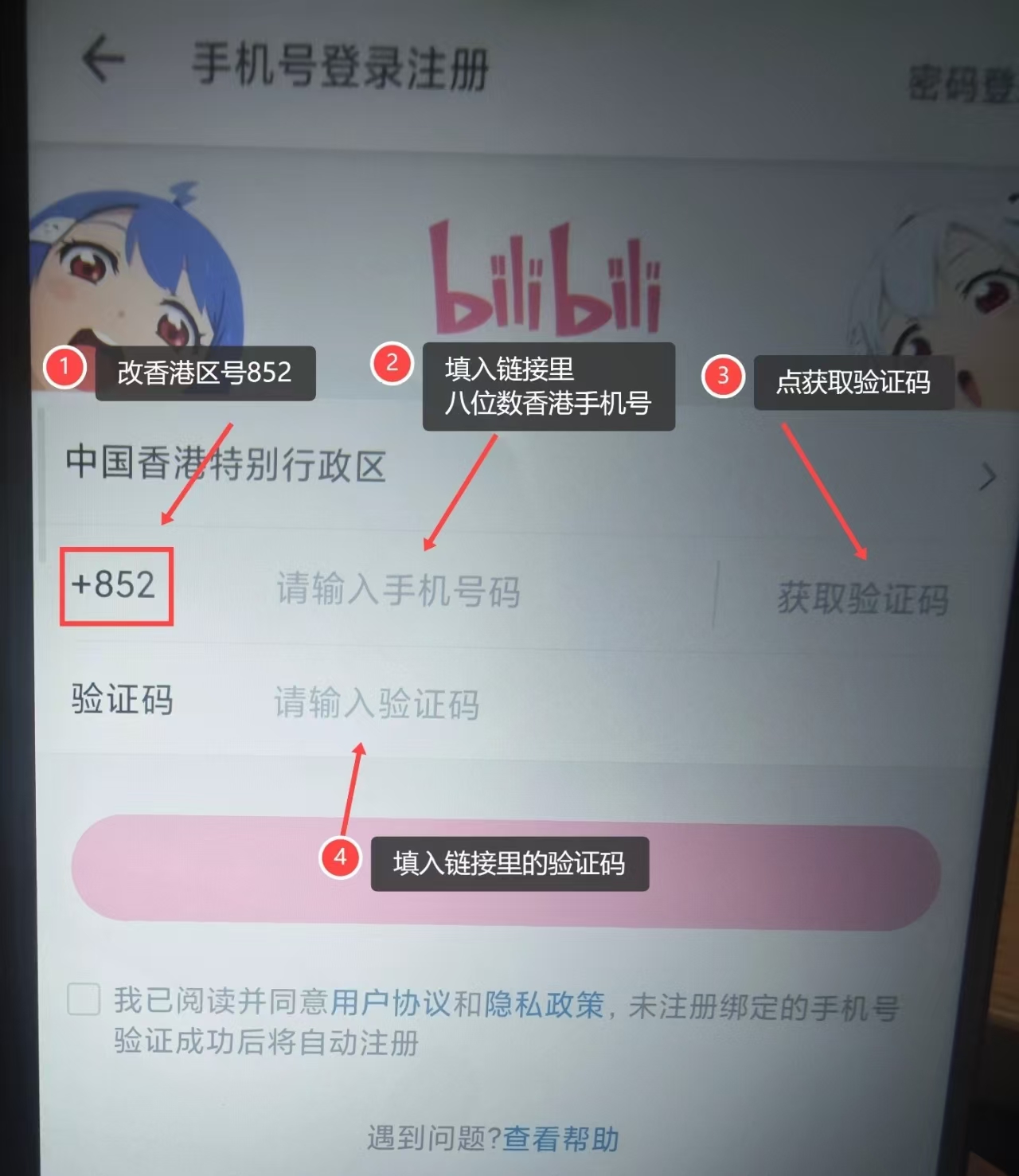 核对下八位数号码是否输错。 区号86是否改852了。 方法1:关闭再打开浏览器的链接 方法2:换个浏览器打开链接 方法3:去哔哩登录界面,重新点击获取验证码,去链接里查看