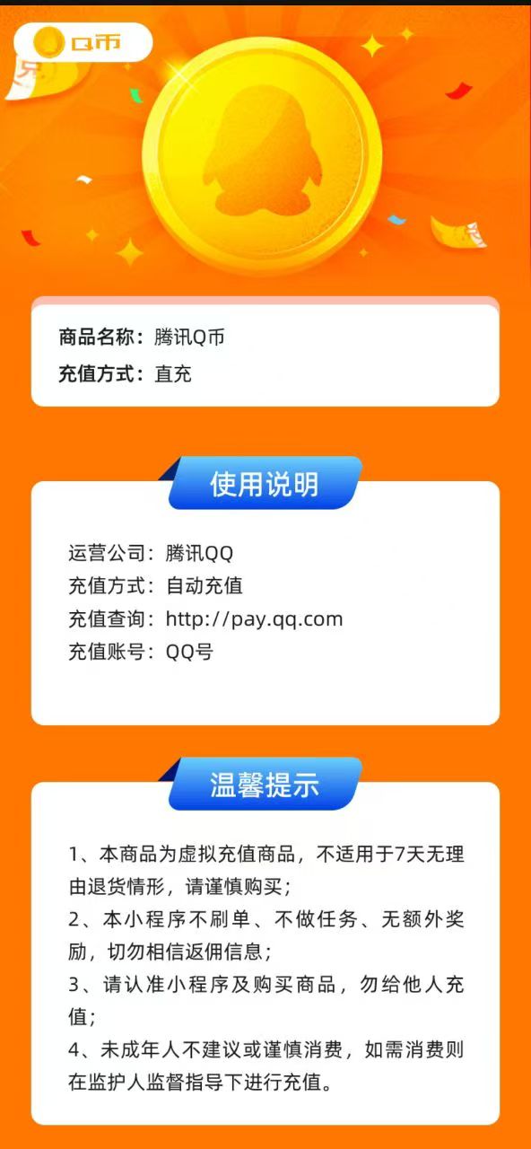 【账号直充】A-腾讯QQ币充值『5币起充』丨下单范围5-10000个